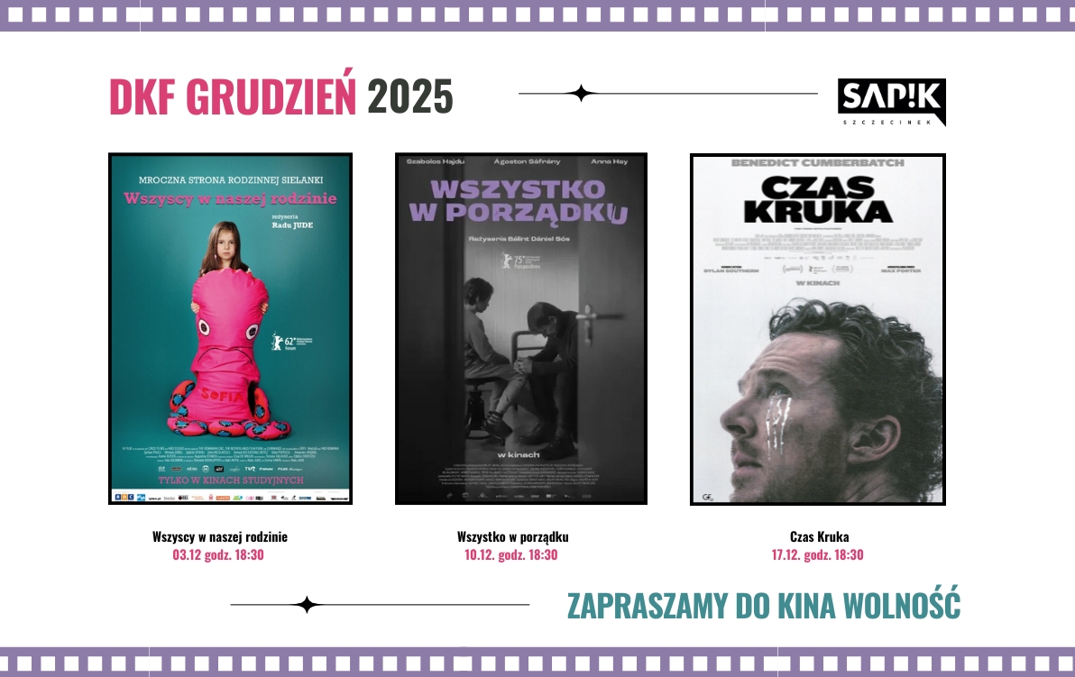 W grudniu zapraszamy na 3 filmowe spotkania w Dyskusyjnym Klubie Filmowym w Szczecinku.